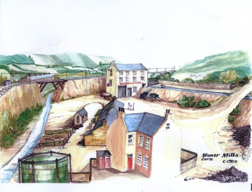 Above: The manor Corn Mill drawn from maps of 1860s by Vic Fleming.